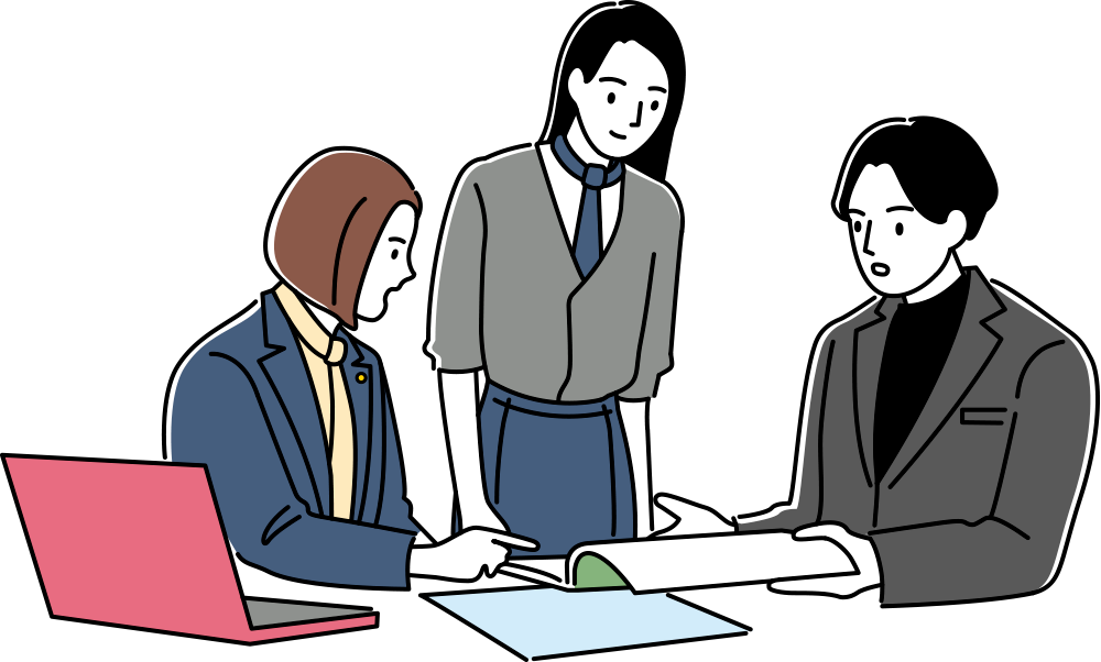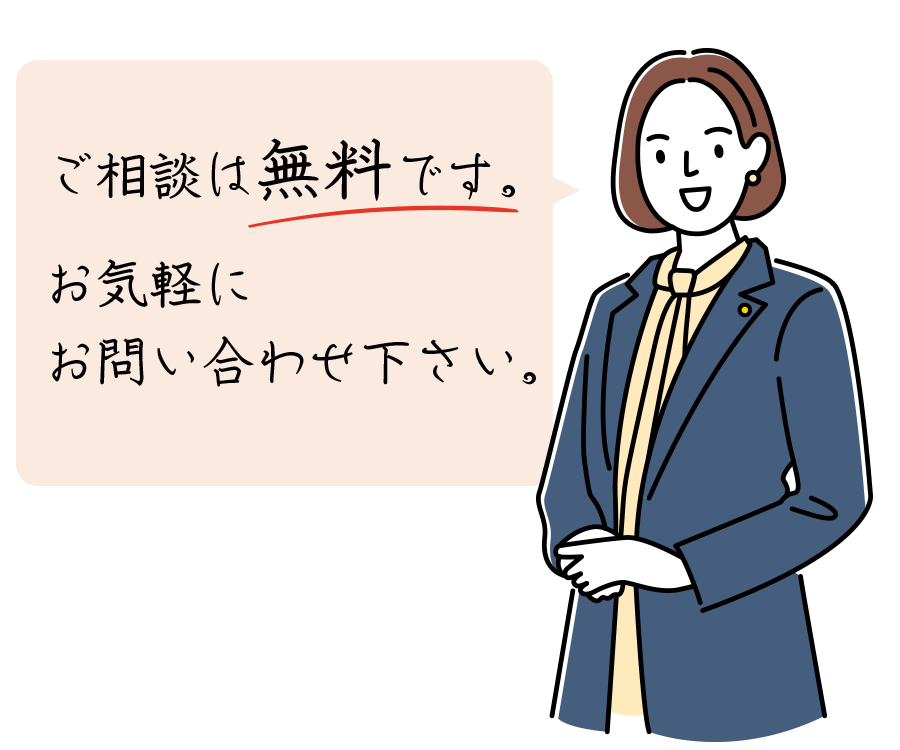 場合によっては、弁護士、行政書士などにお繋ぎいたします。